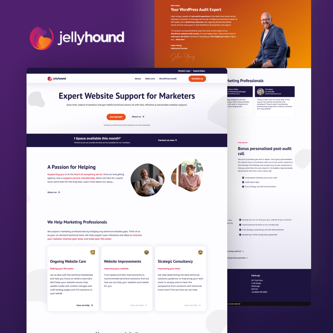 For Jellyhound.co.uk, our IT consulting provides hands-on management of technical support and IT systems for their web agency.